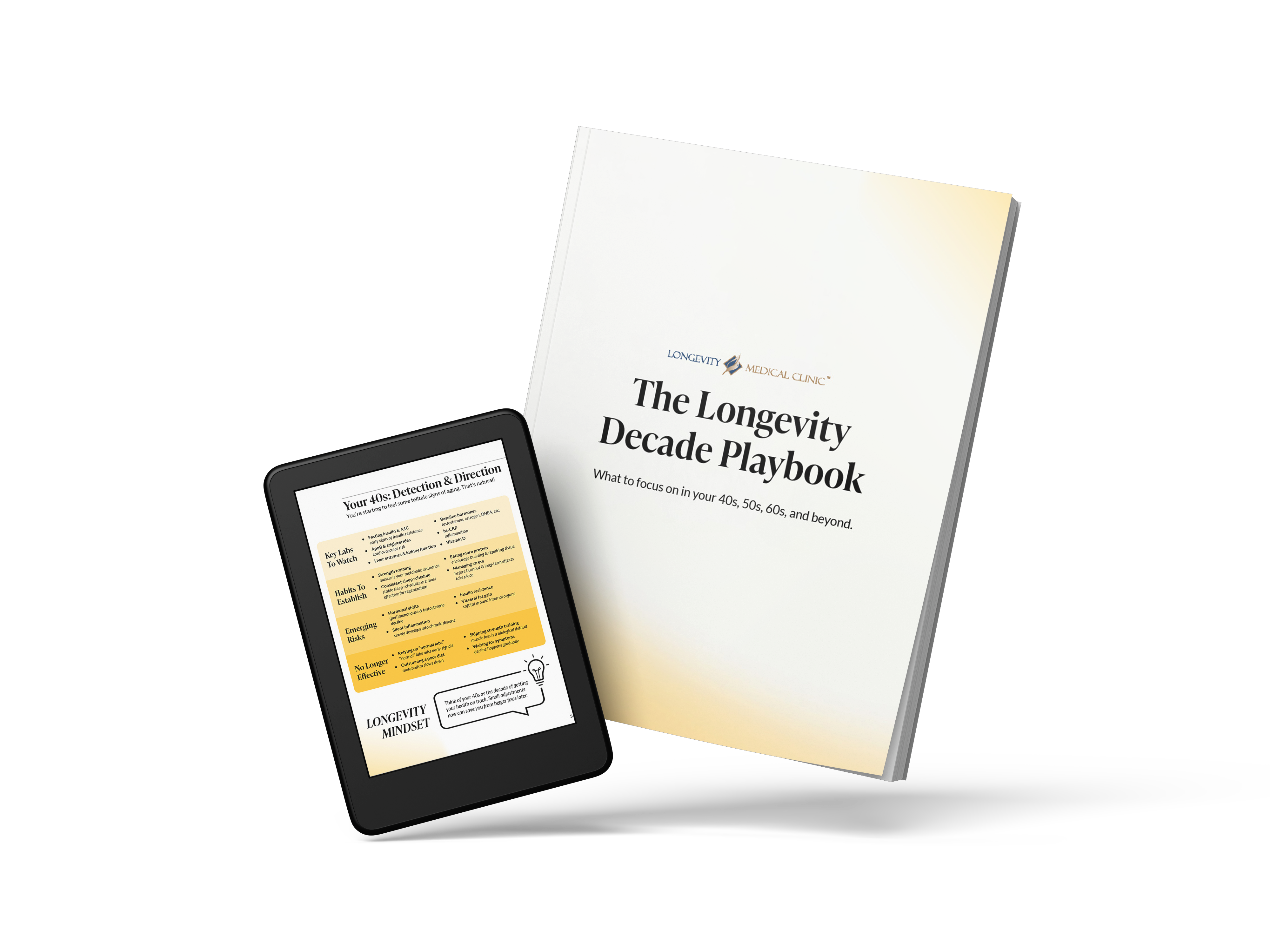 The Longevity Decade Playbook is a no-nonsense guide for people in mid-life looking for a little direction. We’ll breakdown what labs to pay attention to, habits to establish, emerging risks, and things you may be doing that just don’t really work. Because the most transformative decades in our lives shouldn’t be complicated.